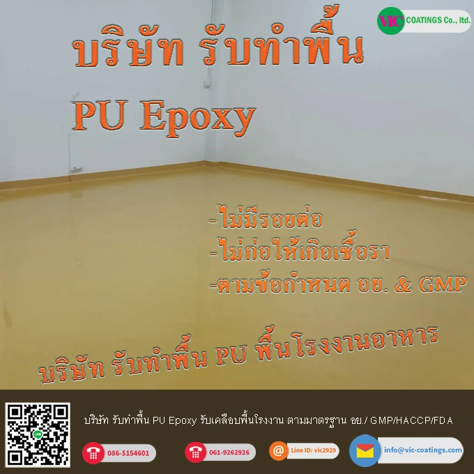 บริษัท รับทำพื้น PU มาตรฐานโรงงานอุตสาหกรรมอาหารและยา ผู้เชี่ยวชาญด้านพื้นโรงงานอาหาร เครื่องดื่ม เบียร์ เวชภัณฑ์ ยา เครื่องสำอางค์และยา ตามข้อกำหนดขององค์การอาหารและยา (อย.) GMP HACCP และ FDA